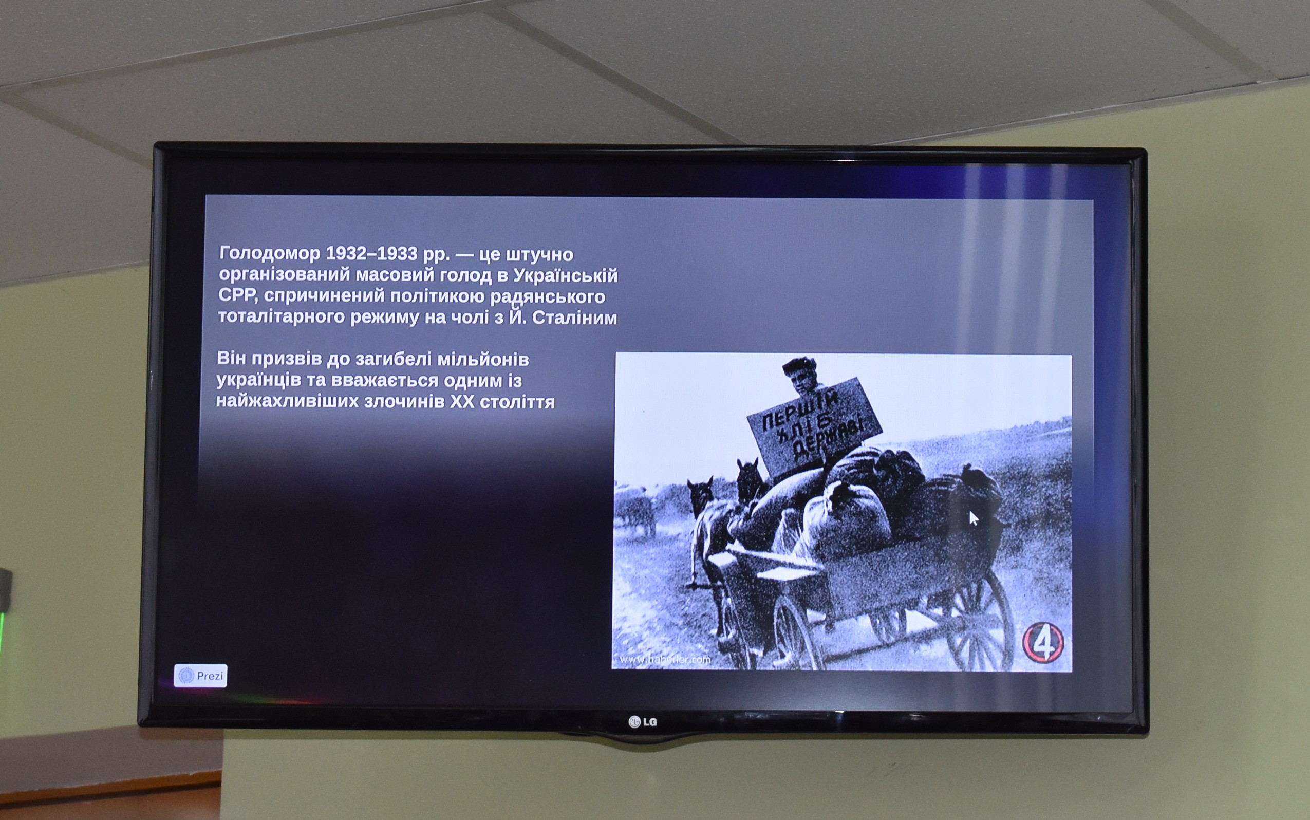 Безумовно, лектор звернув увагу на Голодомори 1921–1923 рр. та 1946–1947 рр., однак акцент був зроблений на найбільш руйнівний Голодомор 1932–1933 років, який визнаний геноцидом українського народу.