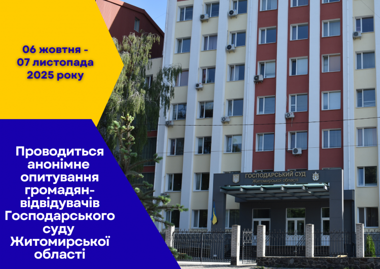 Мета опитування - отримати відгуки, пропозиції, зауваження та скарги щодо діяльності суду та врахувати їх для поліпшення організаційної роботи Господарського суду Житомирської області.